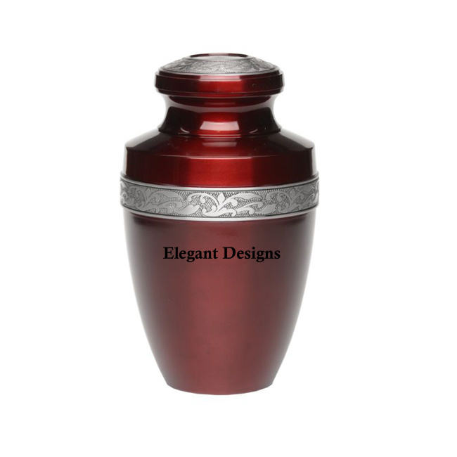 Urna de cremación de Color rojo de excelente calidad, urna de forma redonda al por mayor, urna de cremación clásica lujosa recién llegada al por mayor
