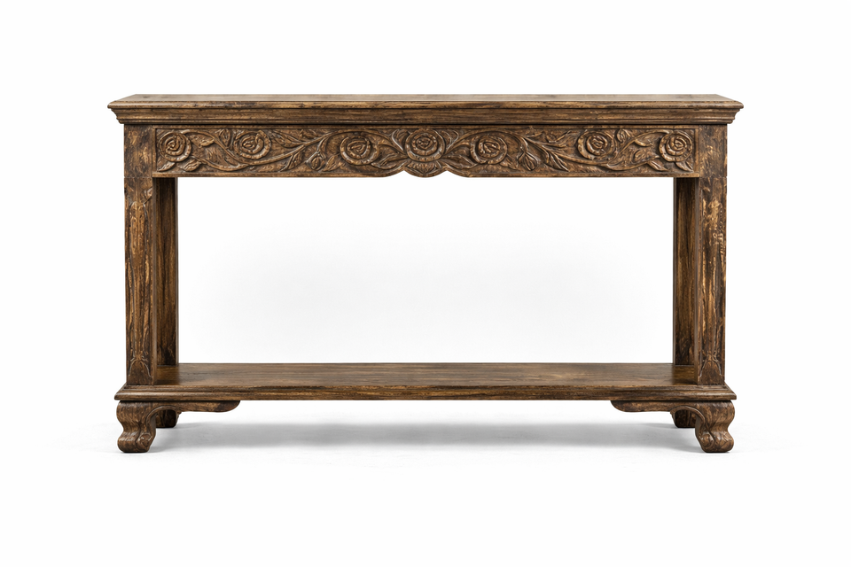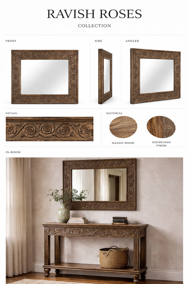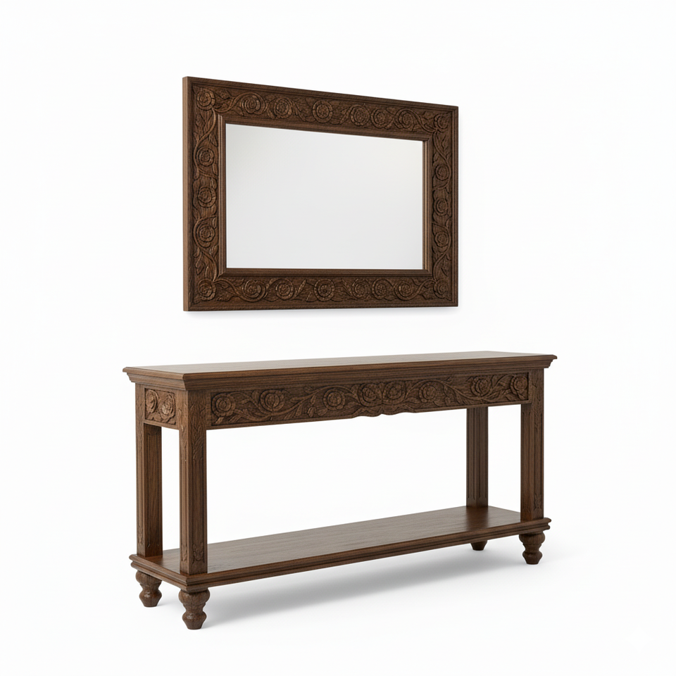 Mesa Consola Ravish Roses de Madera Sólida de Excelente Calidad con Espejo a Juego para Entrada y Sala de Estar a un Precio Accesible