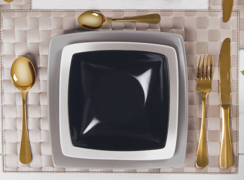 Juego de 6 Platos Cuadrados de Cerámica para Sopa, Acabado Negro Mate, Diseño Nórdico Minimalista y Elegante, Eclipse by Excelsa