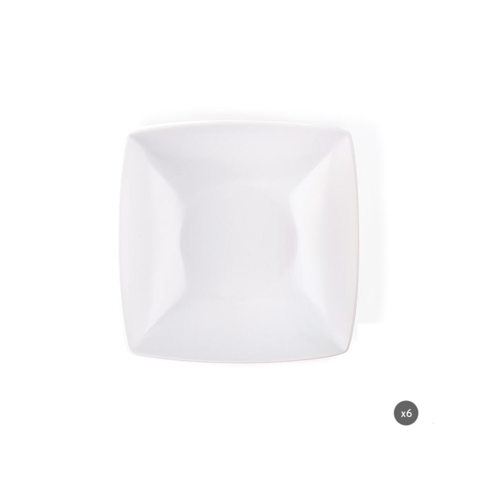 Juego de 6 Platos Cuadrados de Cerámica para Sopa, Acabado Blanco Mate, Diseño Nórdico Minimalista y Elegante, Eclipse by Excelsa