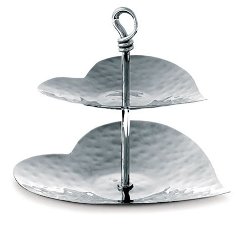 Exclusivo soporte de pastel en forma de corazón de 2 niveles, mesa de Plato decorativo plateado para exhibiciones de bodas, Material de hierro con embalaje de bolsa OPP