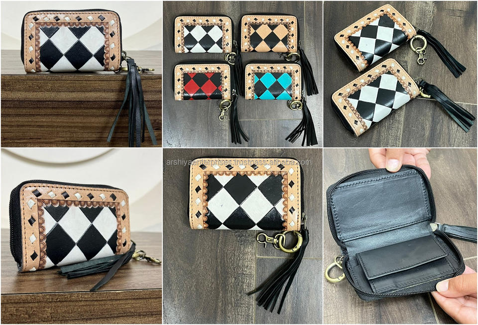 Product name:Checkered Design Genuine Leather Coin Purse Wallet