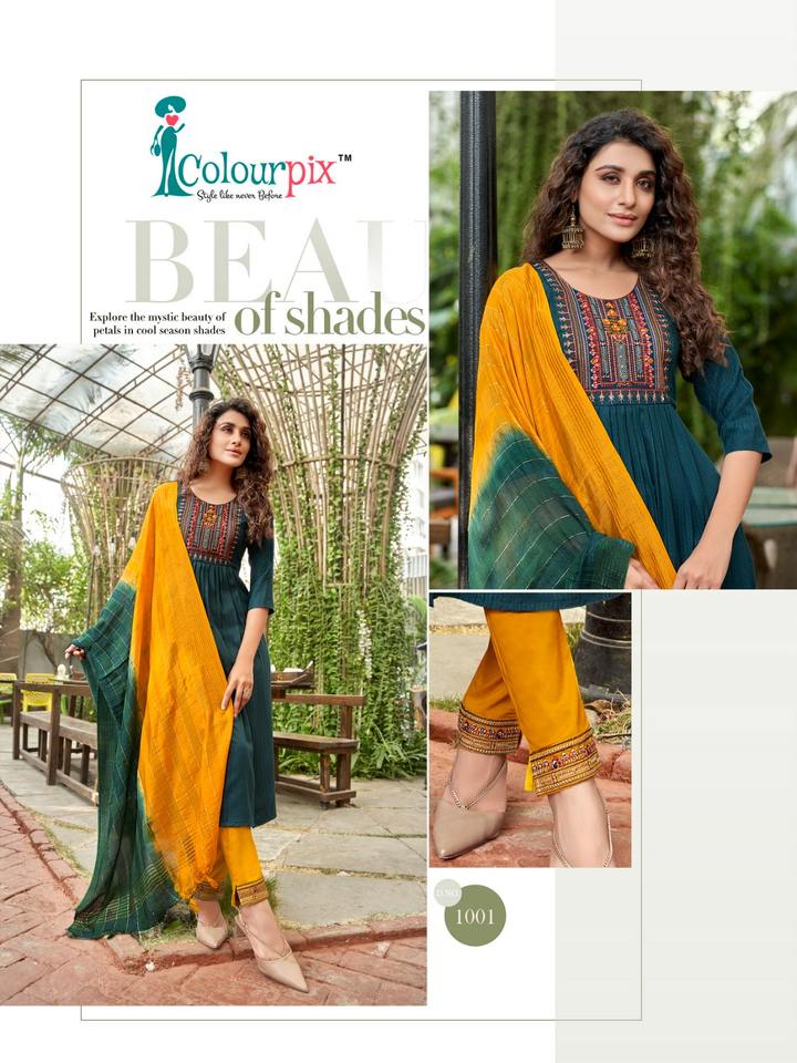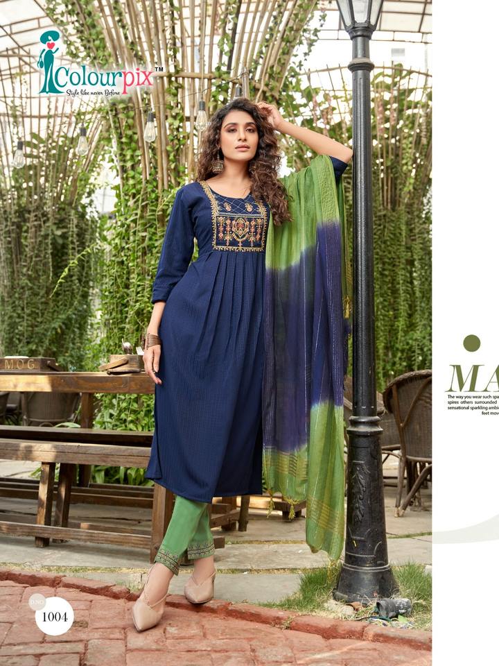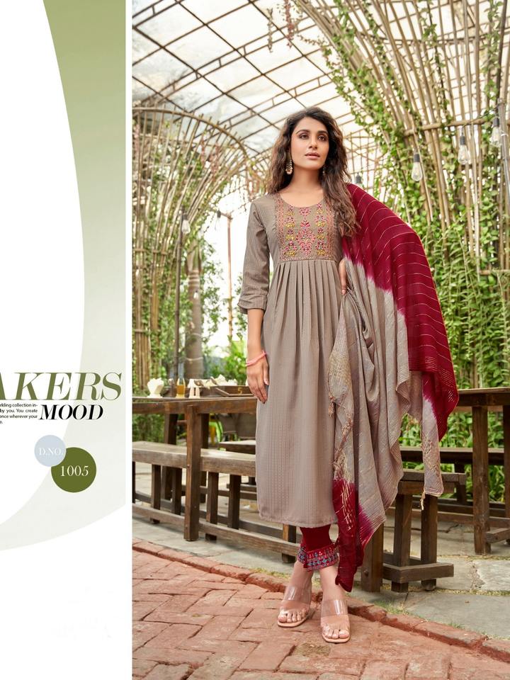 Exclusivo pesado bordado de viscosa trabajo Kurti pantalón con Dupatta