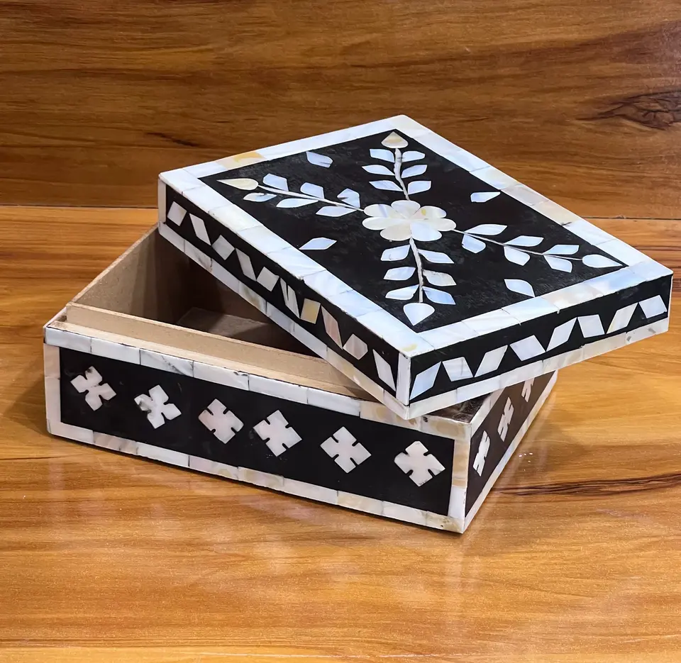 Joyero exclusivo con incrustaciones de hueso, regalo elegante para bodas y ocasiones especiales, joyero con incrustaciones de hueso de diseñador a un costo barato