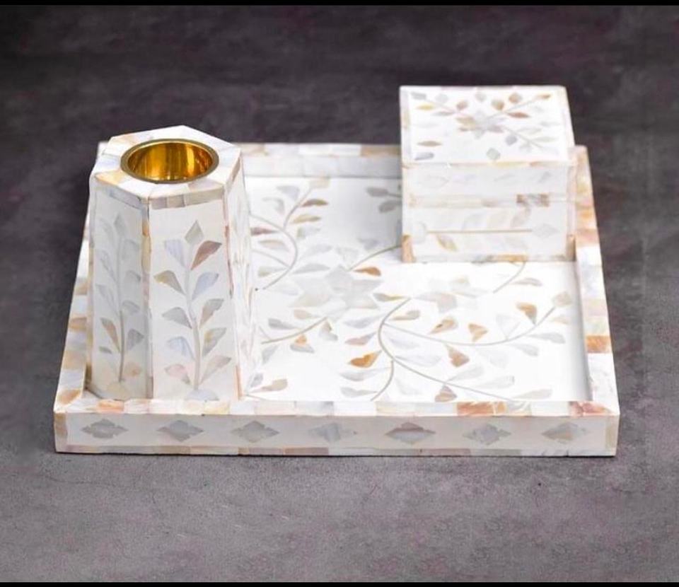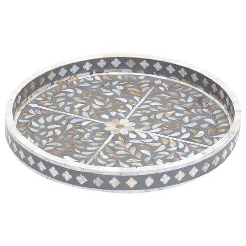 Bandeja de servicio con incrustaciones de hueso de diseño exclusivo Bandeja hecha a mano con diseño floral Bandeja de servicio decorativa para el hogar Hotel y restaurante