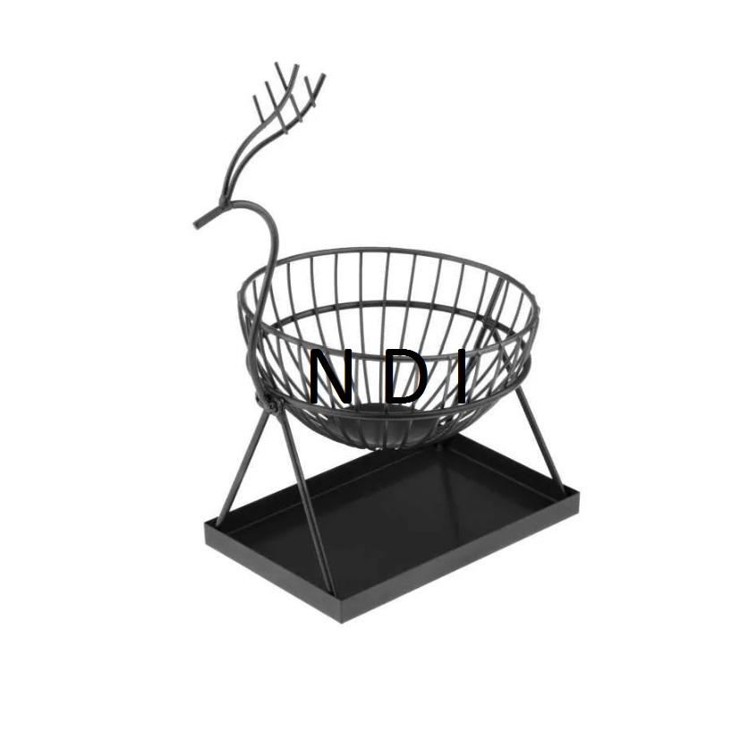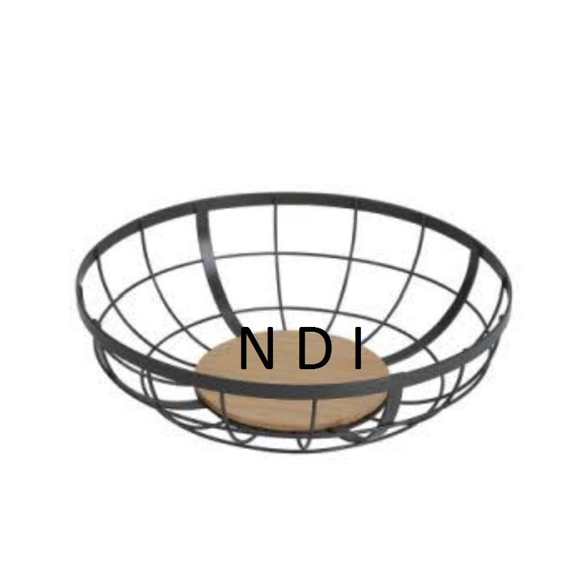 Cesta de Almacenamiento de Frutas y Verduras de Alambre Metálico con Diseño Exclusivo en Acabado de Recubrimiento en Polvo Negro en Forma Redondeada para Hoteles.