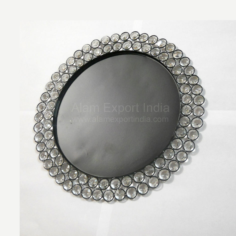 Placa de cargador redonda de diseño exclusivo, anillo negro, cuentas de cristal transparente acabadas para Decoración de mesa de boda y Decoración de mesa para el hogar