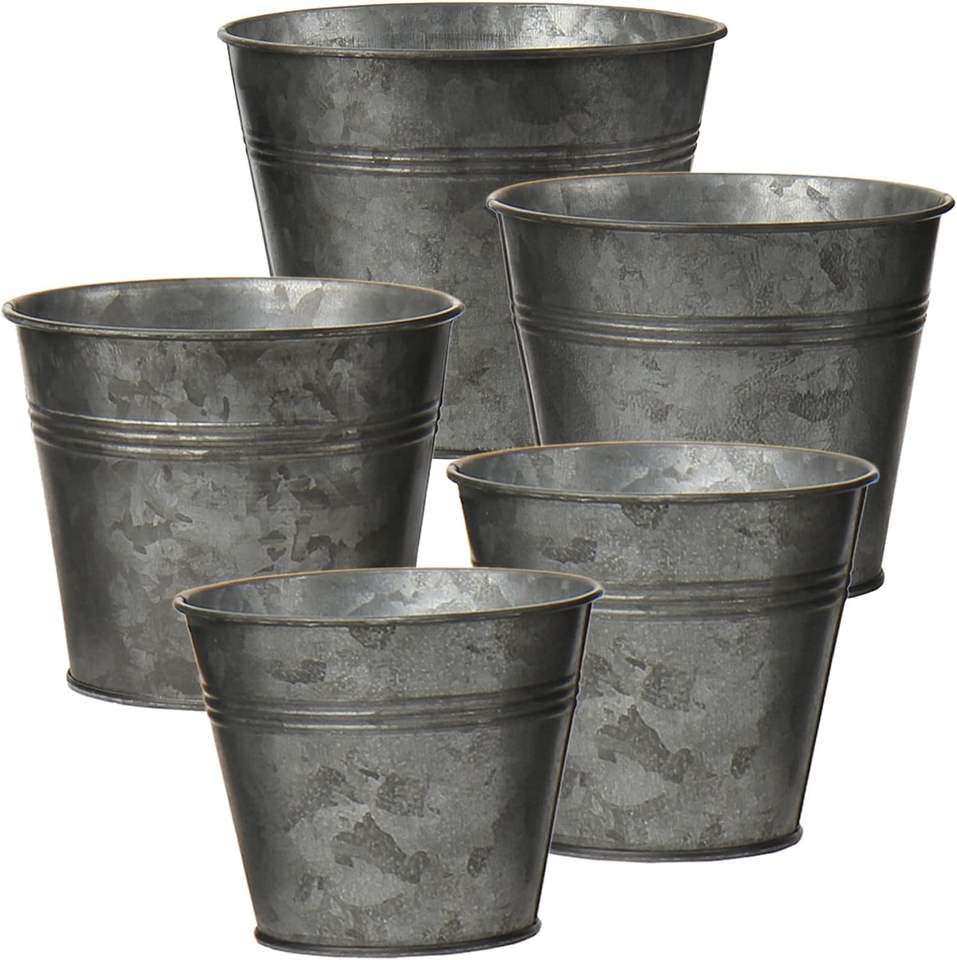 Macetas de Hierro Galvanizado Rústicas de Diseño Exclusivo, Macetas con Asa para Decoración del Hogar y Jardín, Macetas Redondas