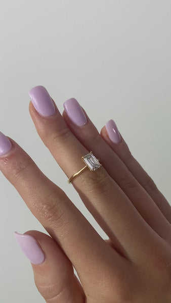 Anillo de Bodas de diamante cultivado en laboratorio Esmeralda conjunto de puntas de oro puro de 18 quilates de diseñador exclusivo anillo apilable de banda de oro solitario minimalista
