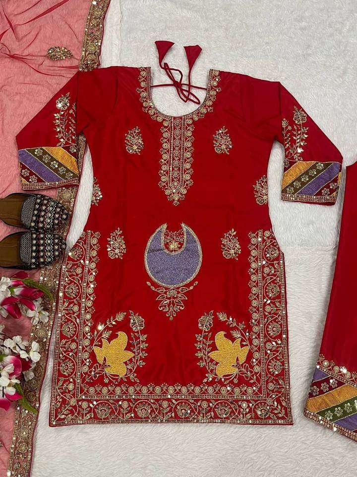 Nombre del Producto:Pantalón superior con lentejuelas de seda crepé y Dupatta