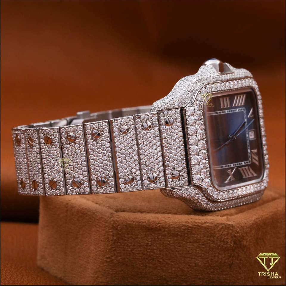 Reloj de pulsera de acero inoxidable de diseñador exclusivo para hombre, número romano, diamante, pavé completo, pantalla de fecha de alta calidad, Hip Hop de lujo
