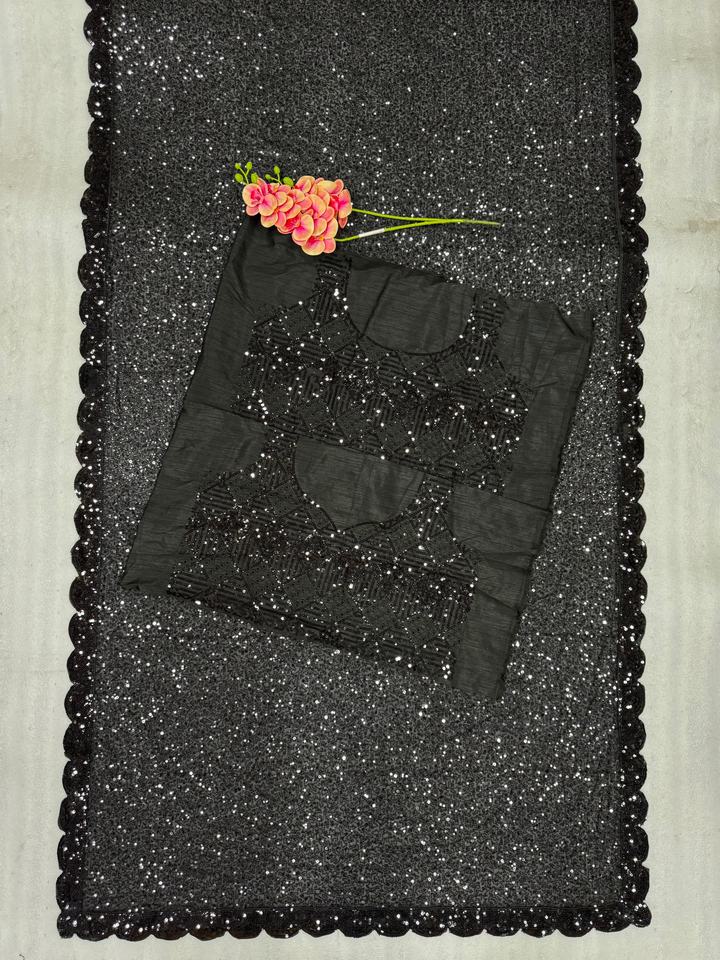 Nombre del producto:Georgette de aspecto elegante con el trabajo pesado Saree del bordado de la secuencia