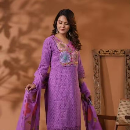 Product Name:Cotton Kurta Pant And Dupatta Set