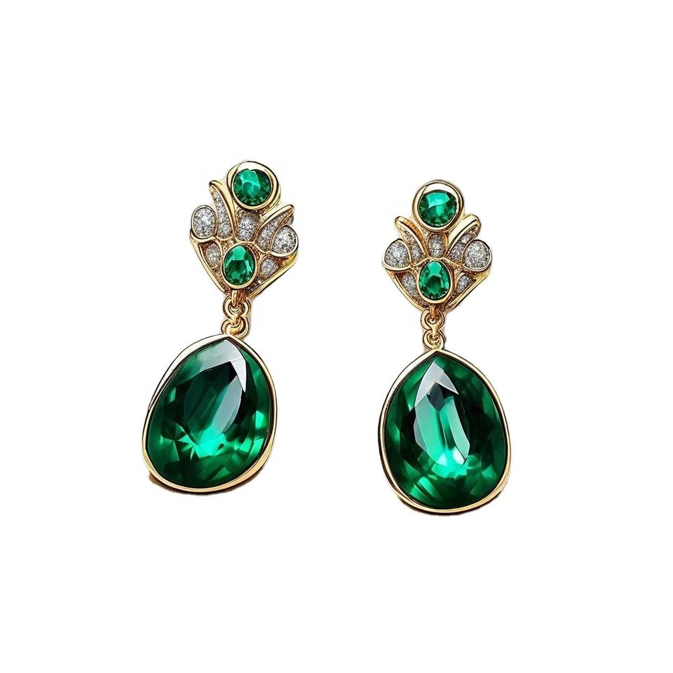 Exclusivo Esmeralda Hydro Green Chapado en oro 925 Plata de ley Forma ovalada Pendientes colgantes de piedras preciosas Accesorio de moda