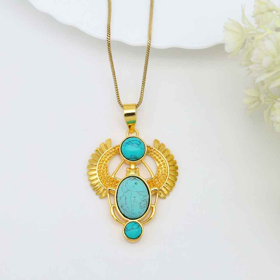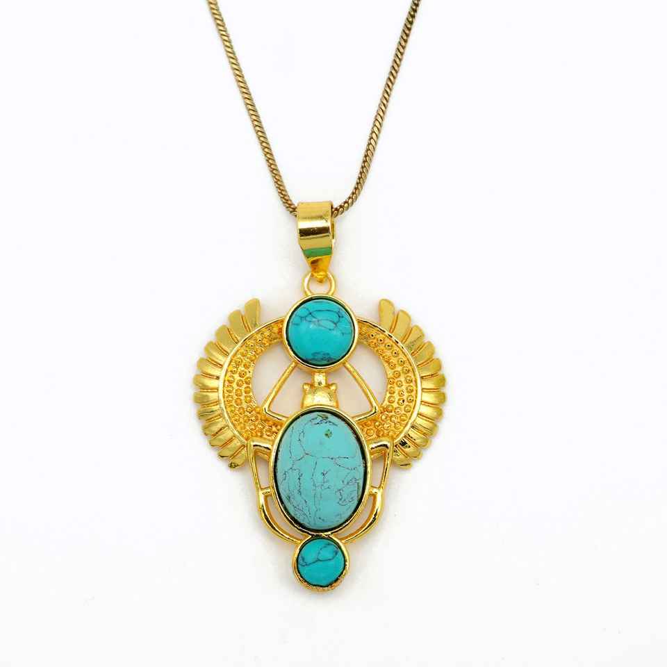 Exclusivo chapado en oro redondo azul ovalado cobre turquesa piedra preciosa escarabajo dorado COLLAR COLGANTE latón talismán joyería Bohemia