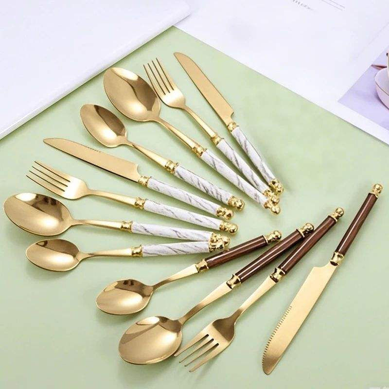 Vajilla Dorada Exclusiva, Juego de Comedor de Lujo, Suministro para Eventos de Hostelería, Venta al por Mayor, Exportación Directa