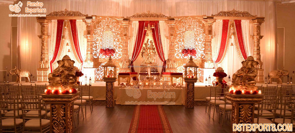 Exclusive Golden Bollywood Pillars Wedding MandapProduct name