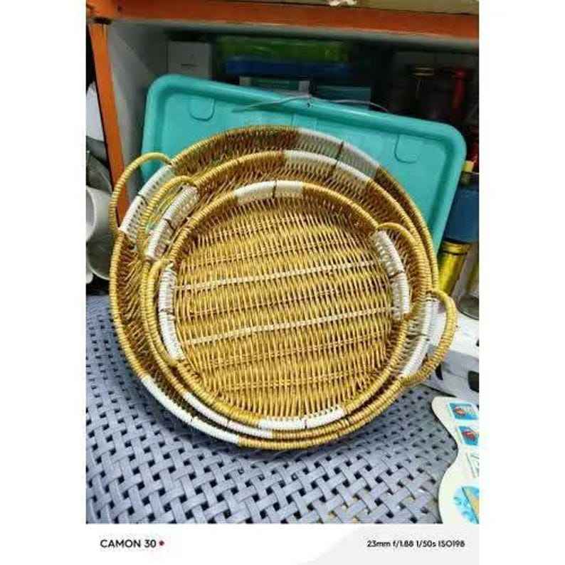 Bandeja de Servir Rectangular de Ratán Tejida a Mano, Exclusiva, para Mesa, Desayuno, Bebidas, Aperitivos, Frutas, con Asas