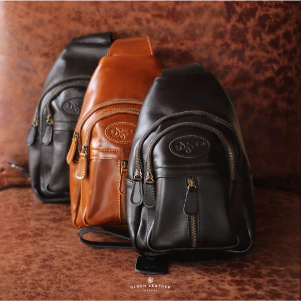 Exclusivo Bolso Bandolera de Cuero Vintage Hecho a Mano, Mochila Cruzada Resistente con Bolsillos con Cremallera Organizados, Artesanía Indonesiana