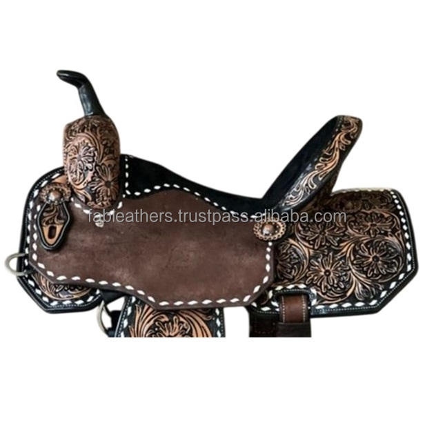 Sillín de caballo de carreras de barril occidental exclusivo de alta calidad hecho de cuero genuino con sillín transpirable cómodo curvado a mano