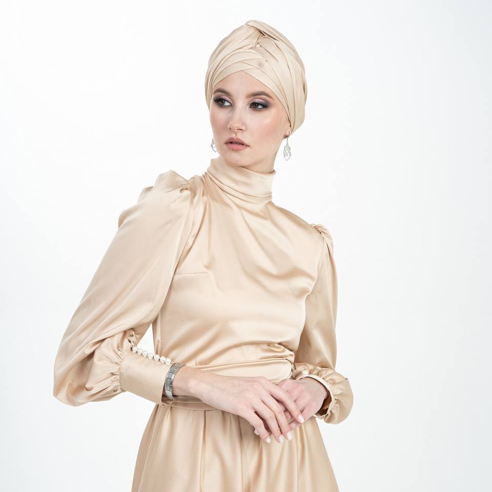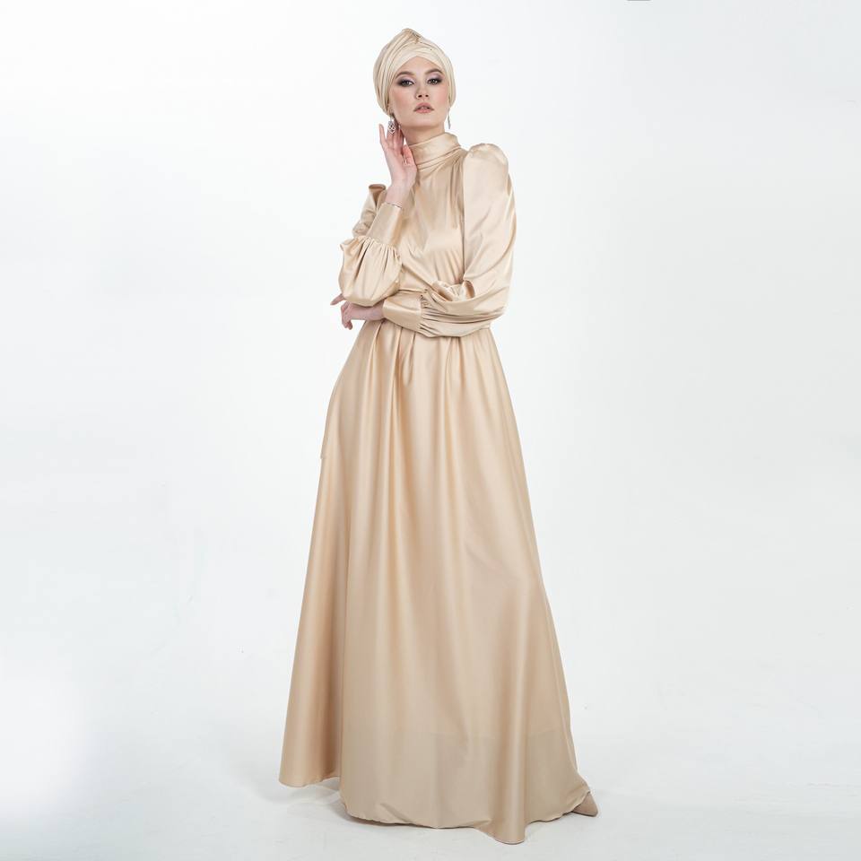 Vestido Abaya con capa ajustada para mujer musulmana, vestido de boda islámico modesto, exclusivo, Color Beige, tocado