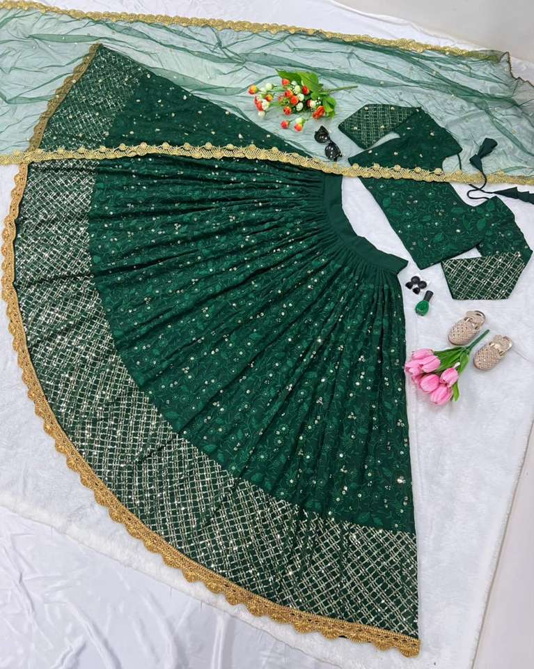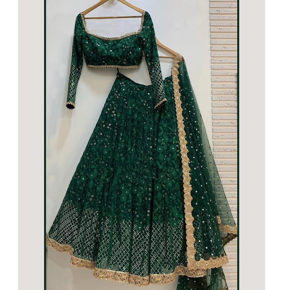 Georgette-ropa de boda de diseño indio, ropa de boda de color verde oscuro, Lehenga Choli con Secuencia bordada, venta al por mayor