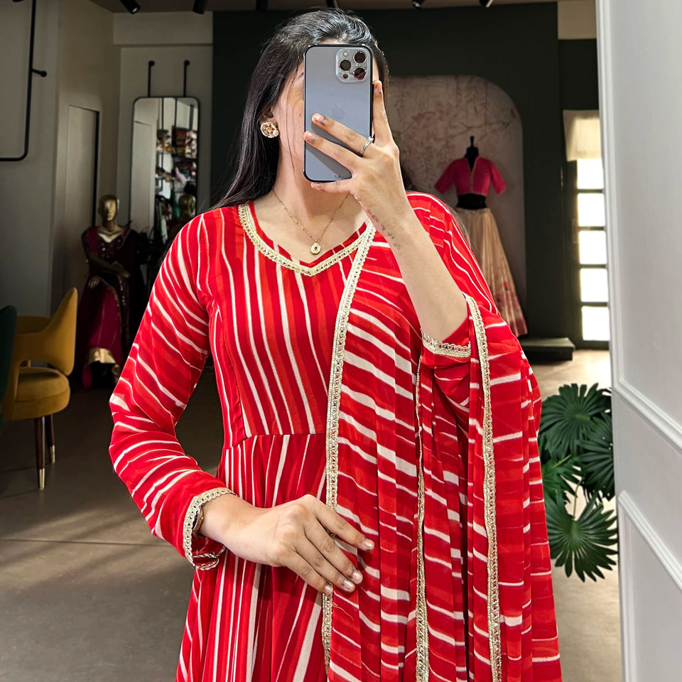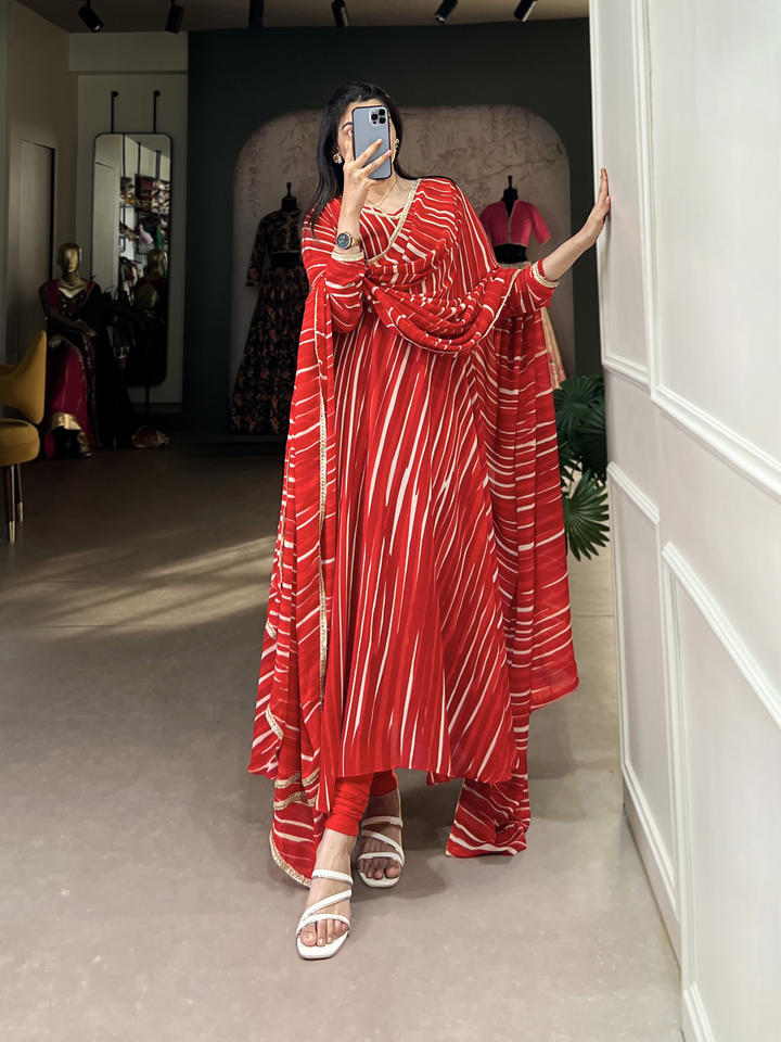 Trabajo de Dupatta:Leheriya Georgette con retoque de encaje