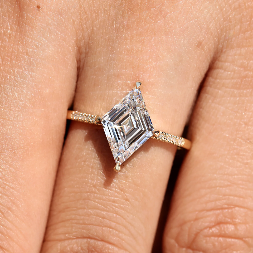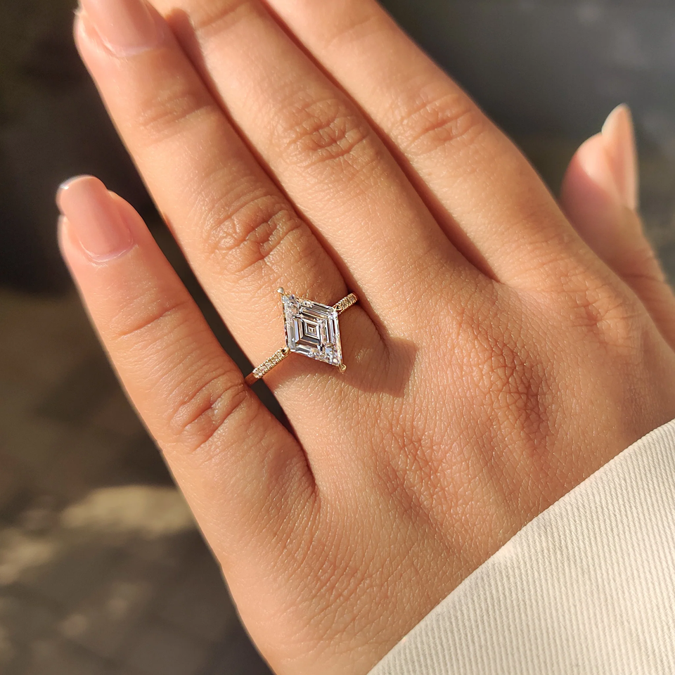 Anillo Exclusivo para Mujer con Corte de Diamante en Forma de Rombo, Engaste Seguro con Puntas en Forma de Brújula, Oro de 10KT, 14KT, 18KT, Cultivado en Laboratorio, Certificado IGI, Chapado en Oro