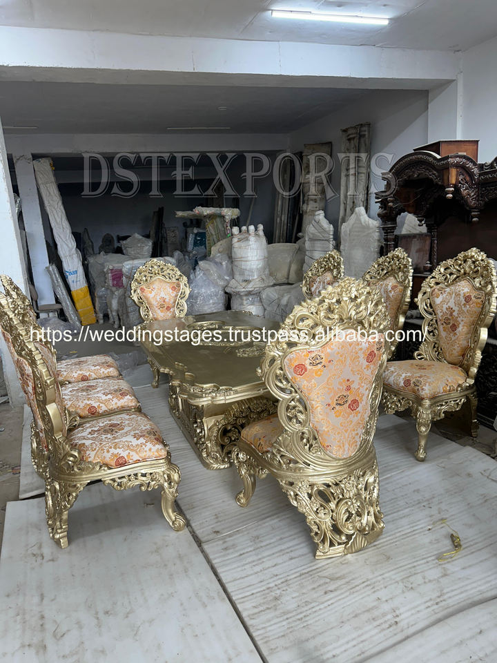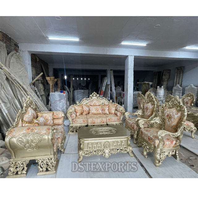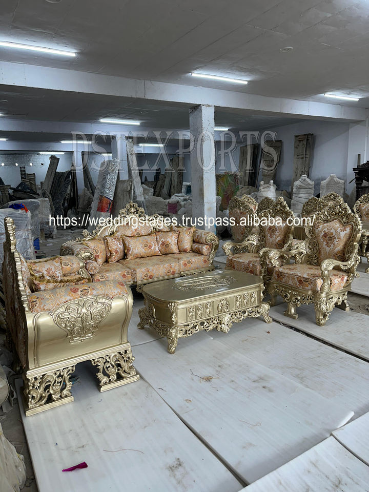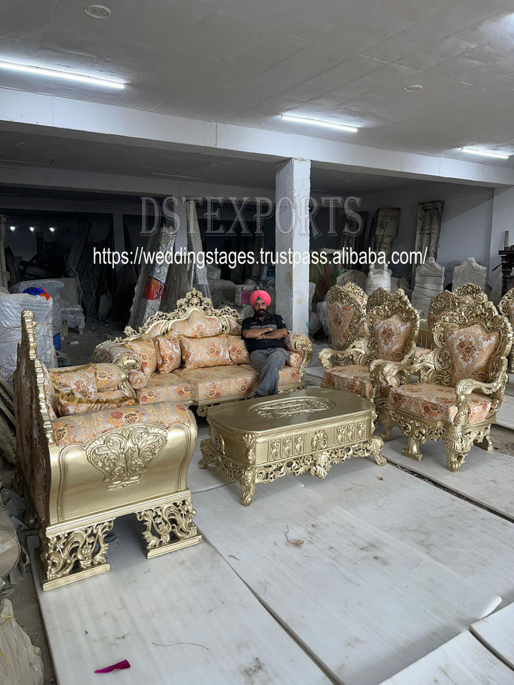 Nombre del producto:Exclusivo conjunto de sofás de estilo Maharaja en acabado dorado