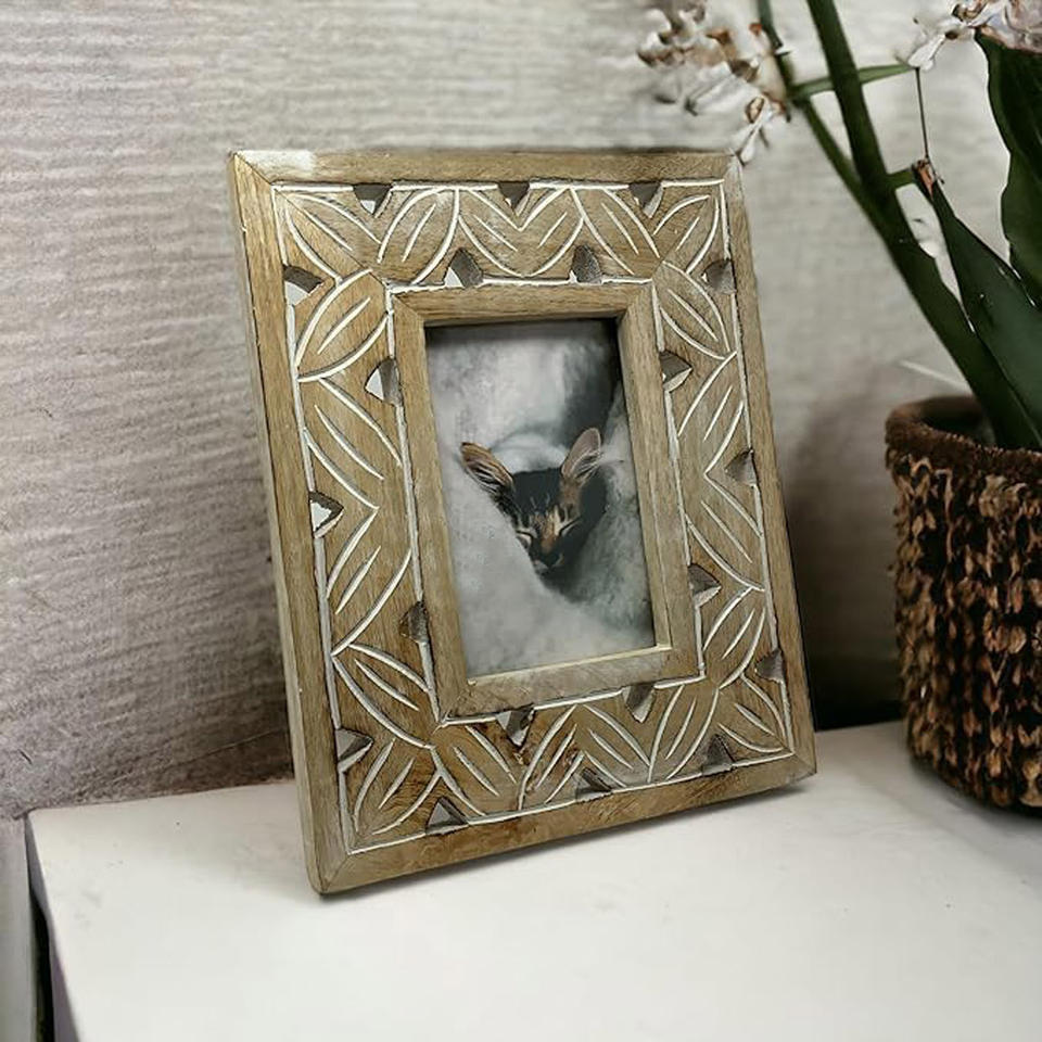 Nombre del producto:Marco de fotos de talla de mano de madera de mango