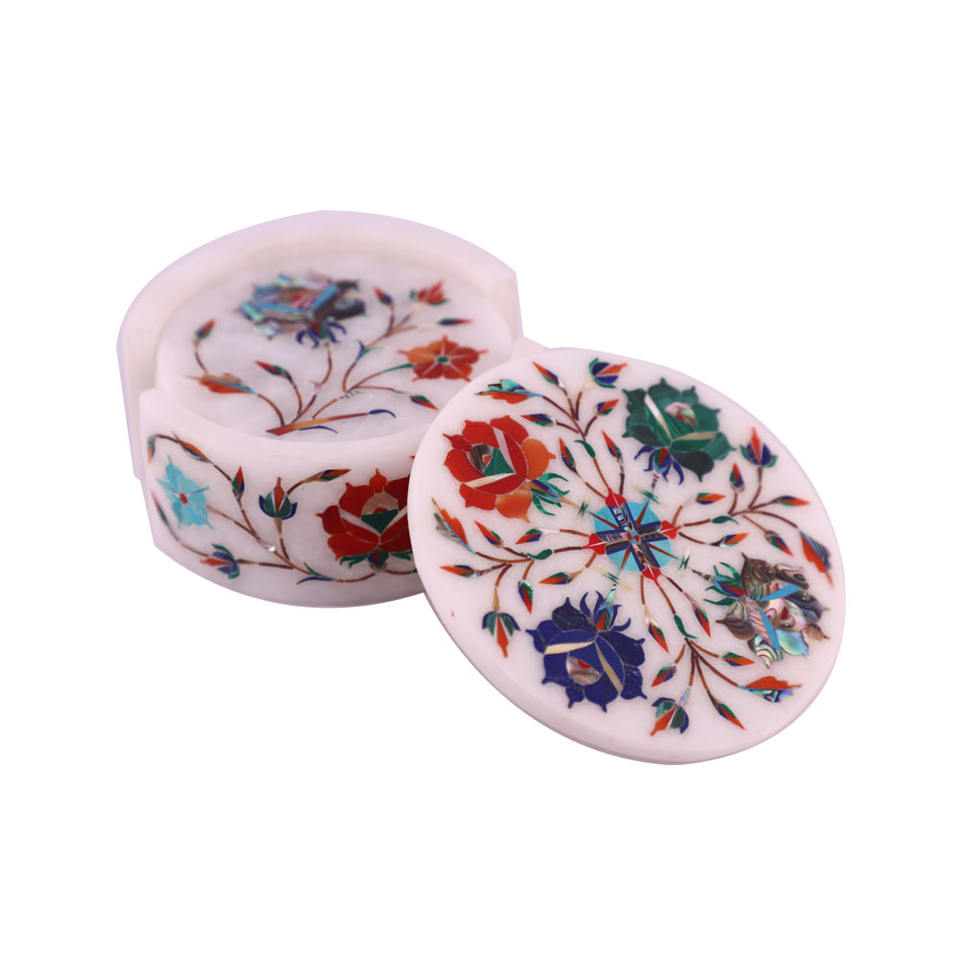 Posavasos de piedra natural de diseño exclusivo y moderno, posavasos blancos con incrustaciones de latón, posavasos con patrón de mármol, posavasos de piedra absorbente
