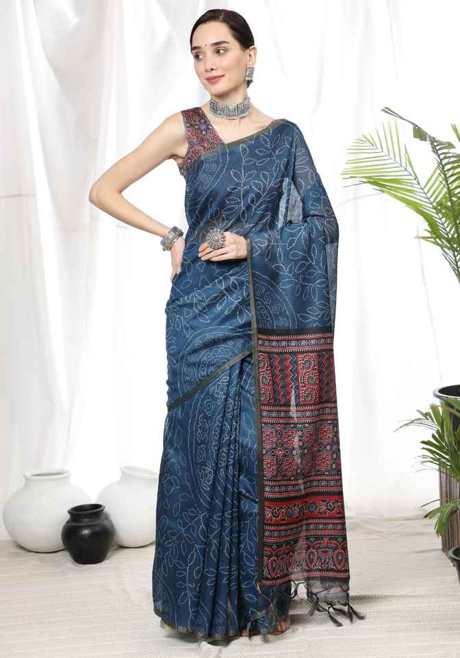 Nombre del producto:Suave de algodón de lino saree con hermoso indio huellas