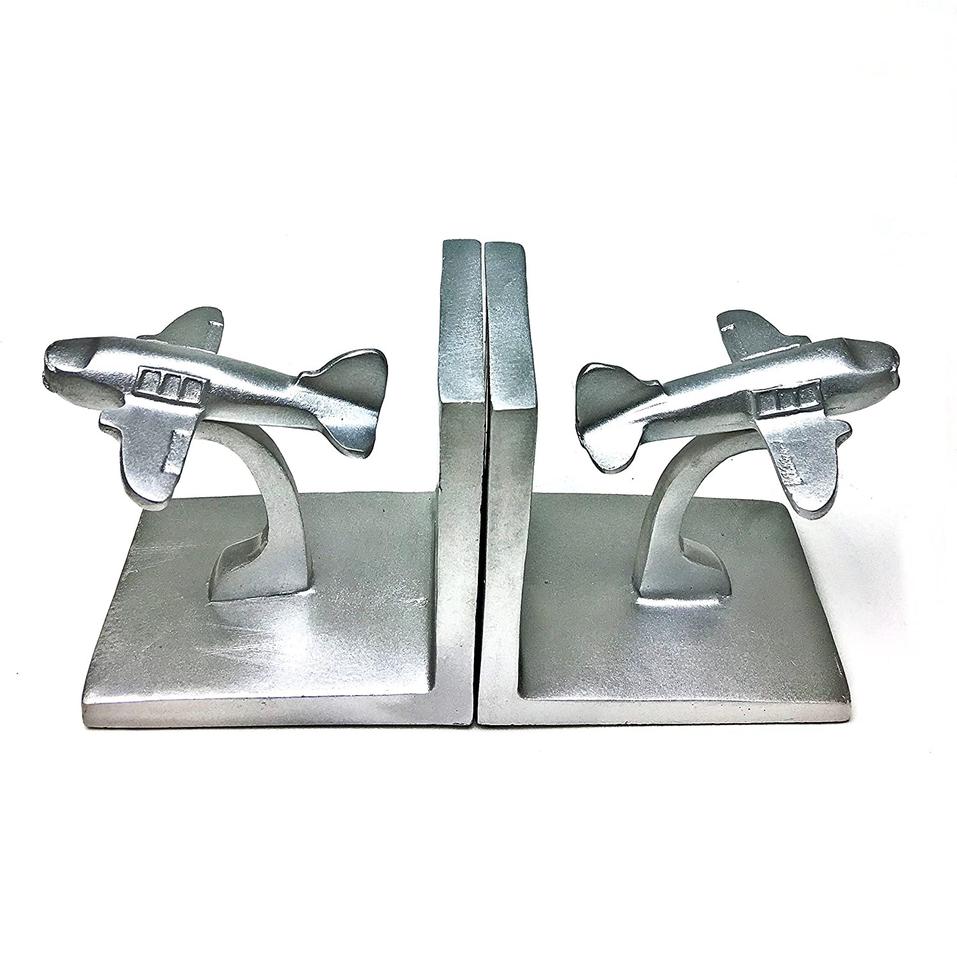 Exclusivo níquel-pulido extremos de libro personalizado impreso organizador de escritorio con figura de avión tema náutico al por mayor Logo sujetalibros