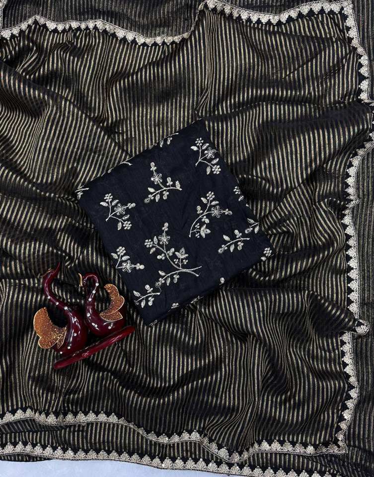 Exclusiva ropa de fiesta Georgette bordado trabajo caliente Color negro Saree para mujeres damas indio traje de compras en línea