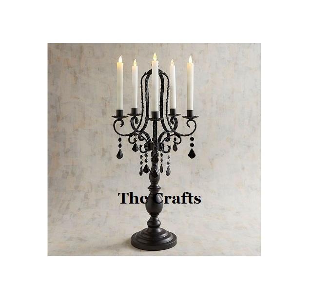 Candelabro de cinco brazos de color negro de hierro, candelabro de tamaño y forma personalizados para uso doméstico, hotel y boda