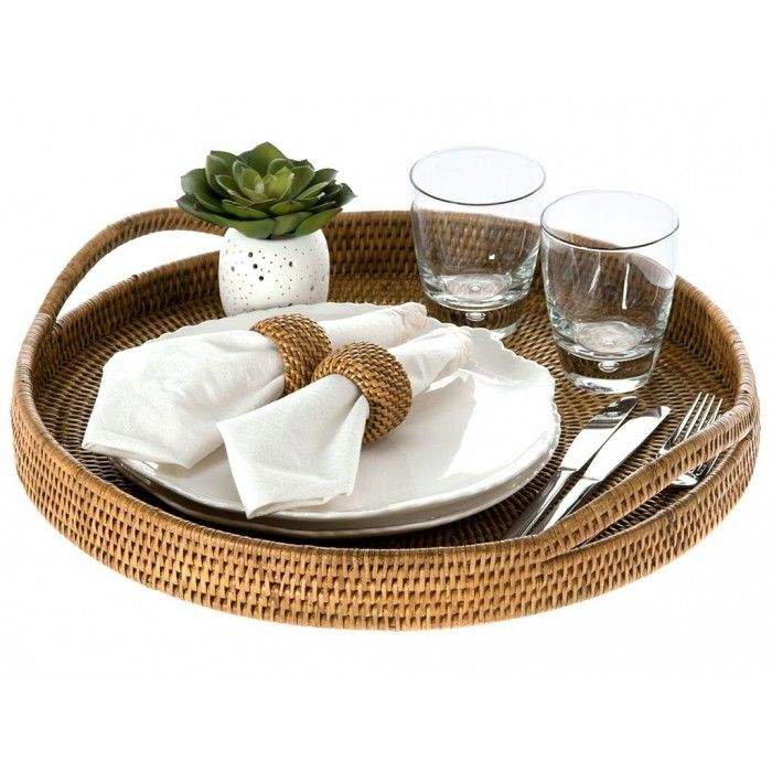 Bandeja de ratán de Calidad exclusiva con bandeja para servir alimentos de forma redonda de trabajo del fabricante en la India