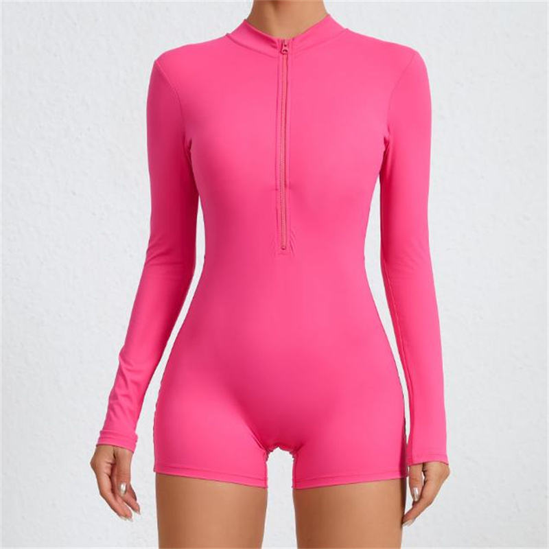 Exclusivo Swing Perfect Fitting Color Mujer Manga larga Suave Control de barriga Compresión Cremallera frontal Body para correr