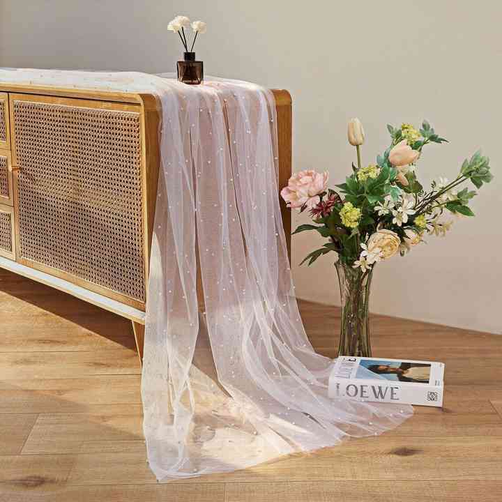 Nombre del producto:Camino de mesa de malla con perlas / Camino de tul con perlas