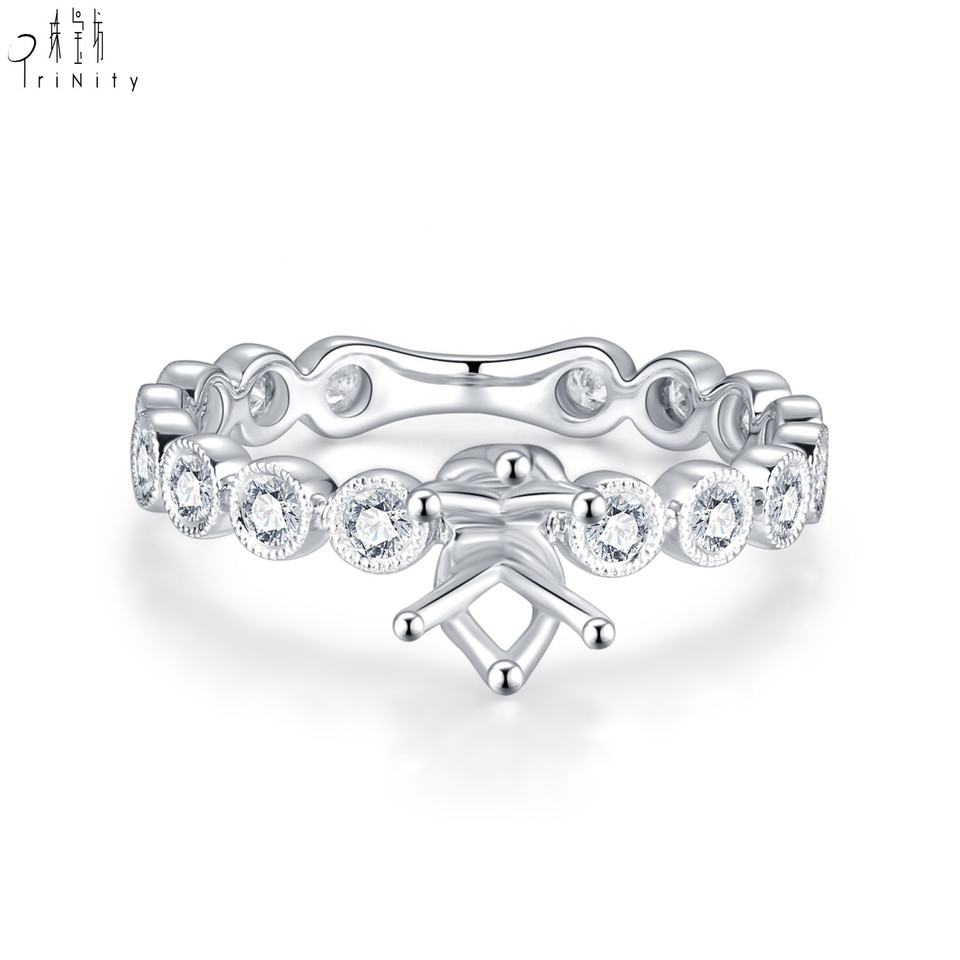 Anillo de Eternidad 3/4 con Diseño Exclusivo y Moderno en Forma de Burbujas, Oro Blanco de 18K, Diamante Natural Real, Anillo de Compromiso Semi-Montado para Mujer