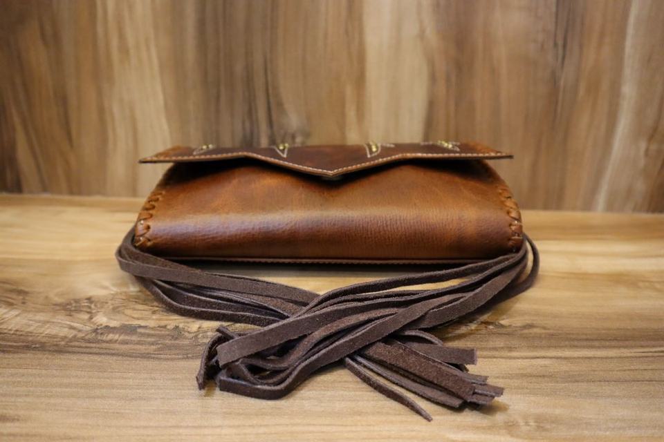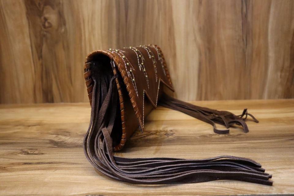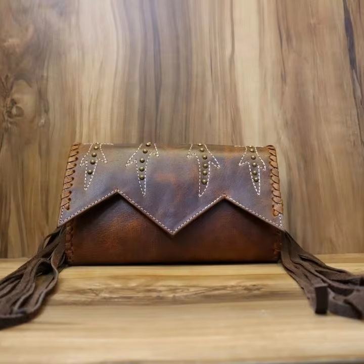Cartera vaquera occidental exclusiva de cuero auténtico con diseño tallado a mano y flecos fabricante y mayorista