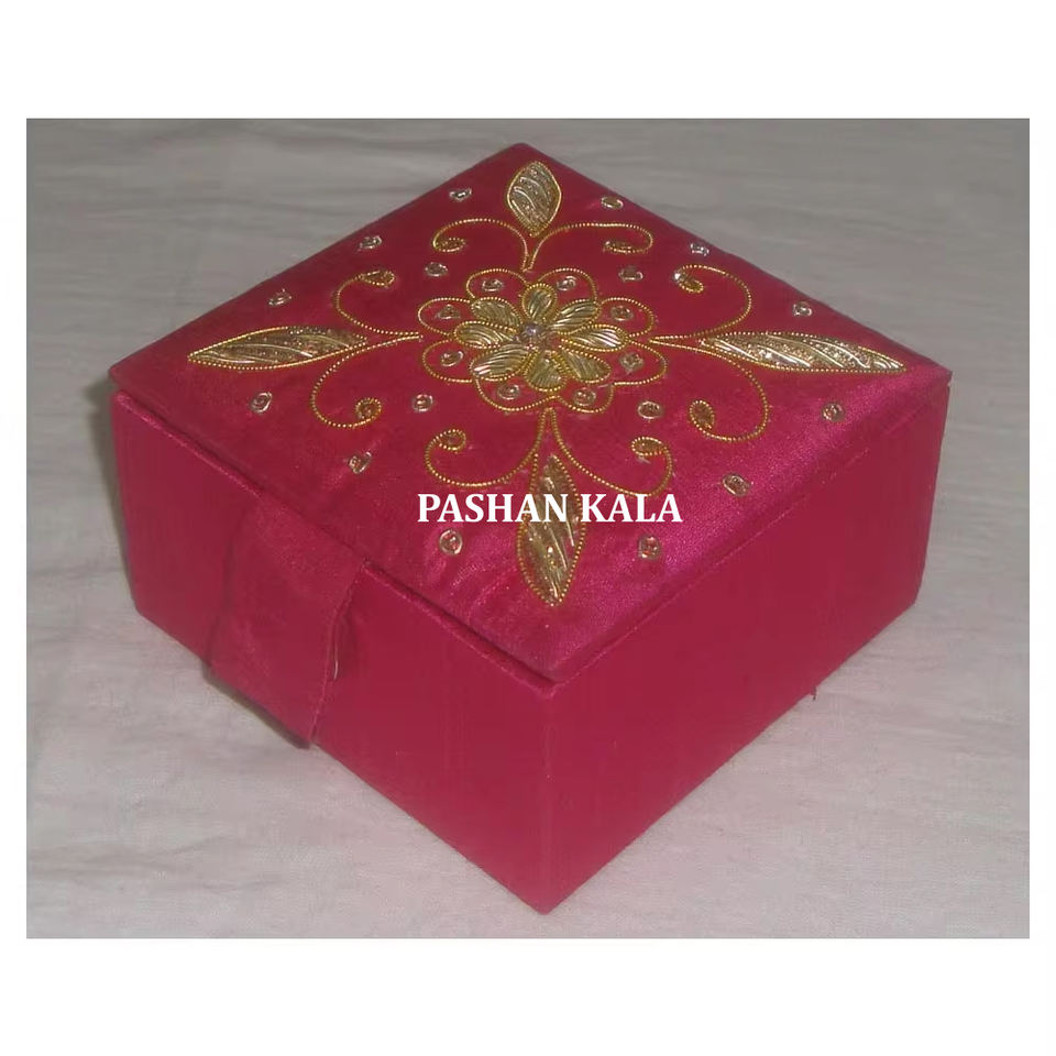 Exclusivo Joyero Cuadrado con Bordado Zari y Cuentas en un Color Único, el Mejor Material de Tela para Decoración del Hogar