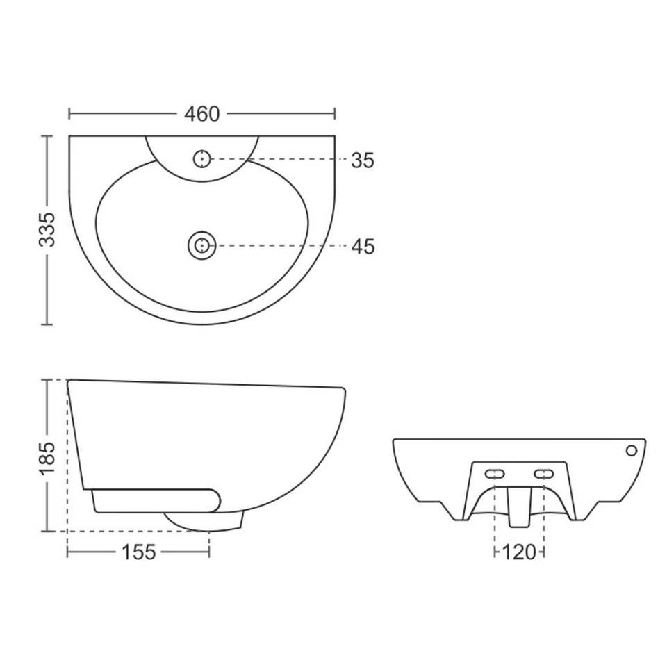 Exclusivo lavabo rectangular de cerámica para colgar en la pared, 460x335x185mm, pedestal de media columna, lavabo flotante para baño, acabado brillante.