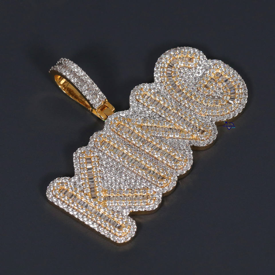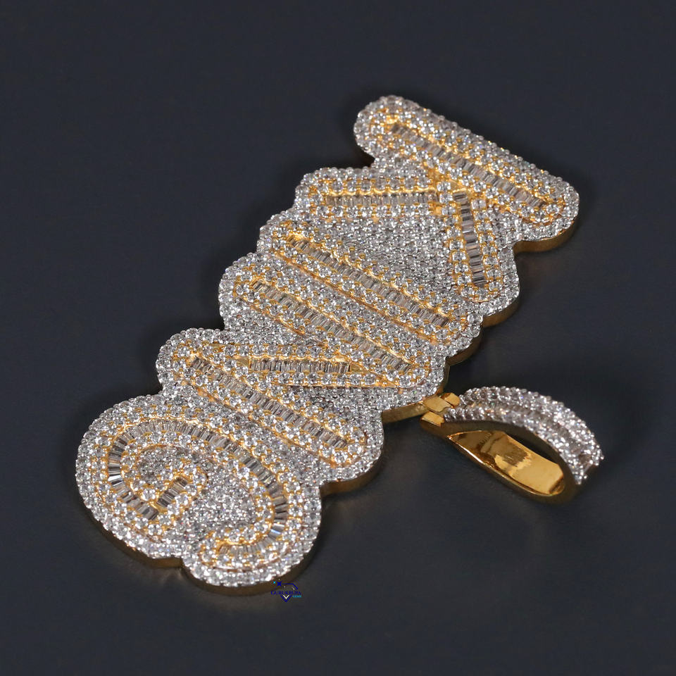 Colgante de diamante cultivado en laboratorio redondo de oro amarillo de 14 quilates exclusivo pero elegante para hombres con claridad VVS mejorada