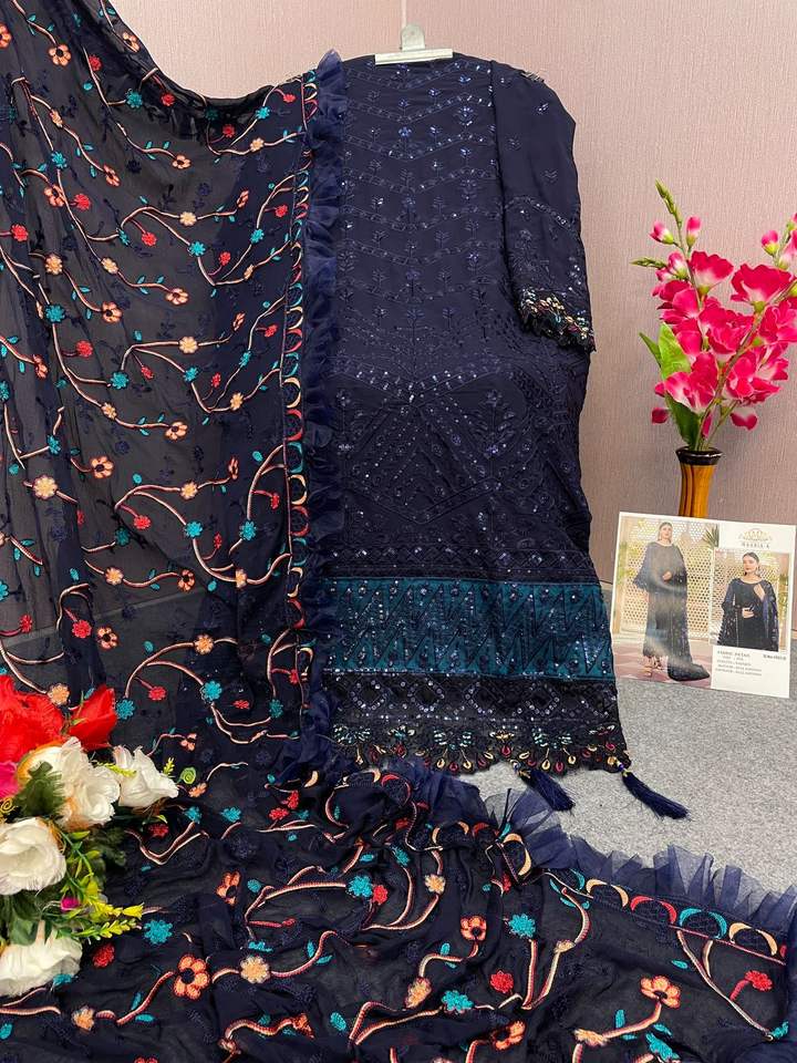 Exclusivamente tendencia pesada Faux Georgette con Secuencia de bordado trabajo traje pakistaní para venta de exportación