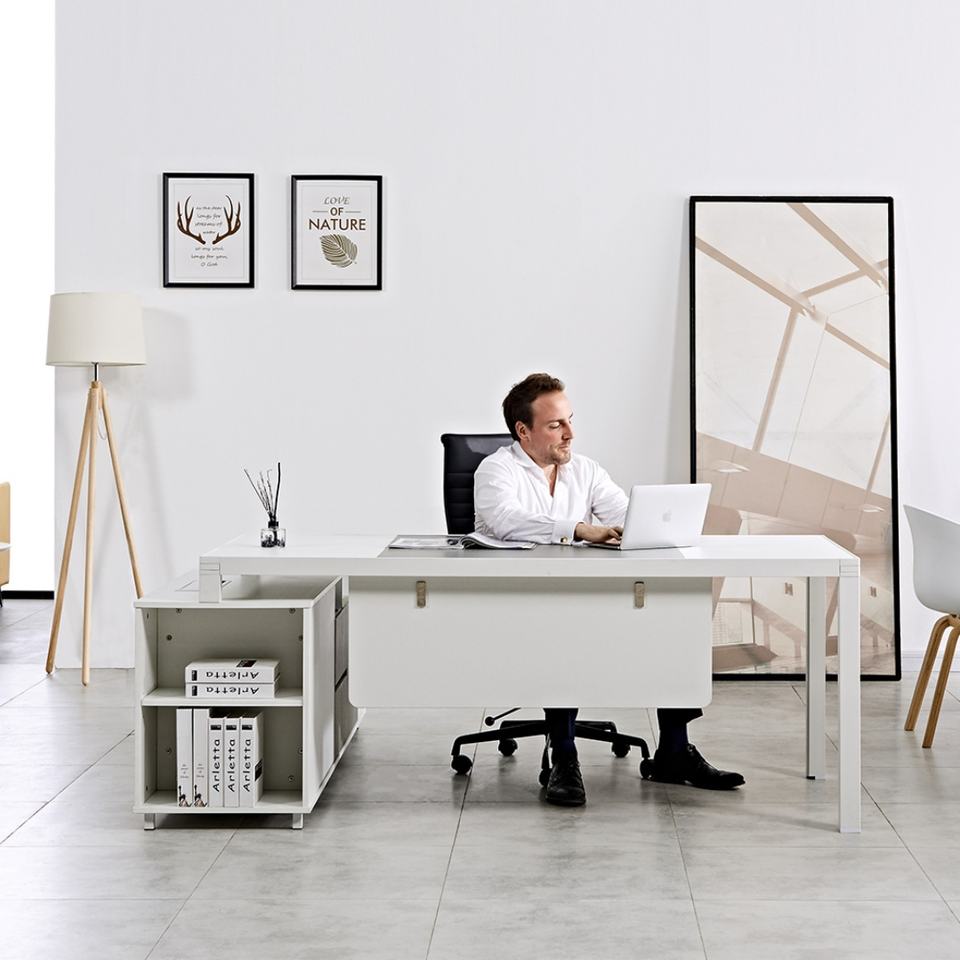 Escritorio de Oficina para Gerente/Director con Marco Metálico de Alta Calidad