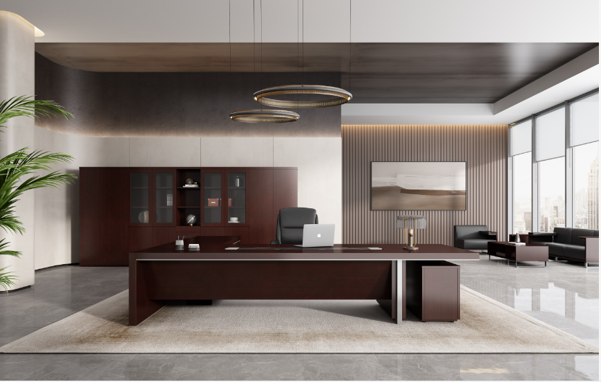 Mesa de Oficina Ejecutiva con Diseño Moderno y Chapa de Madera Ecológica para Trabajo Híbrido y Reuniones Virtuales, Uso en Oficina en Casa
