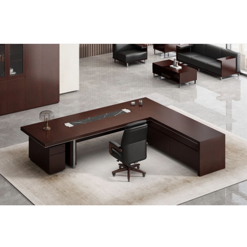 Escritorio ejecutivo de oficina de cuero genuino clásico de lujo