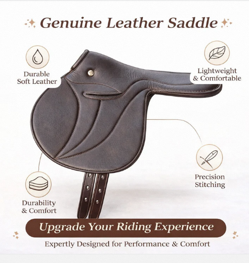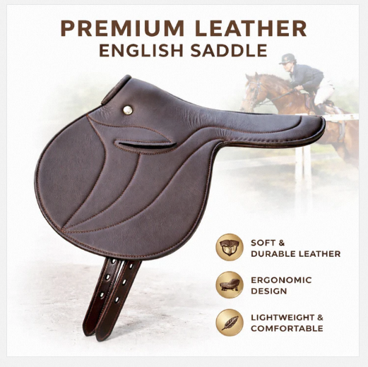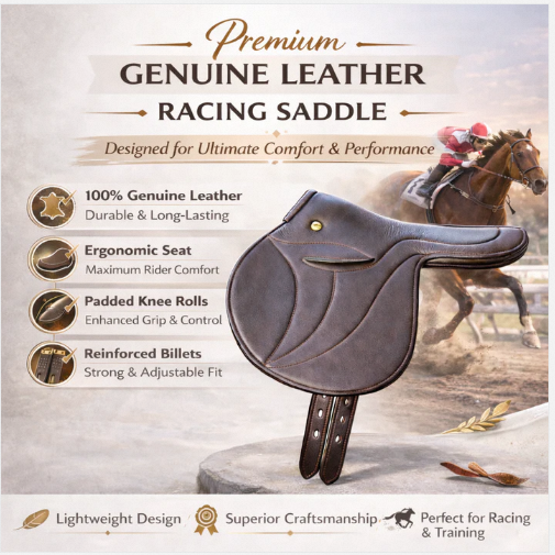 Silla de montar de carreras de cuero ligera y duradera para entrenamiento y uso en pista, tipo Half Tree, estilo inglés.