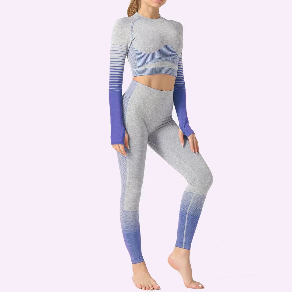 Ropa deportiva para ejercicio, ropa deportiva para entrenamiento físico, ropa de manga larga, ropa de gimnasio, conjunto de Yoga sin costuras para mujer