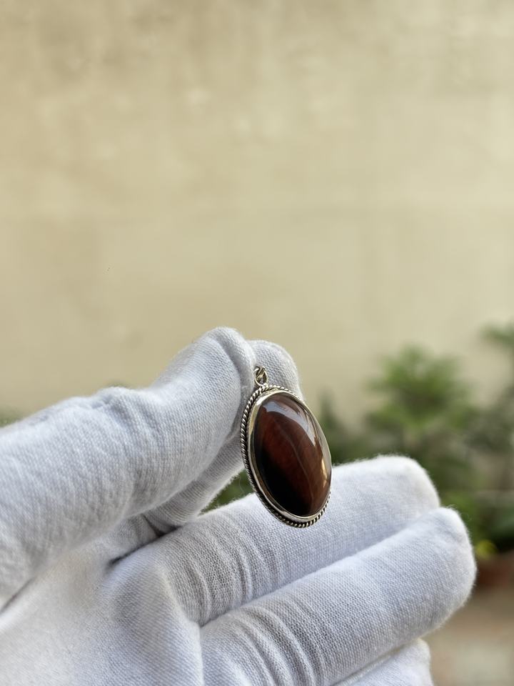 Exquisito Colgante Minimalista de Plata de Ley 925 con Cabujón de Ojo de Tigre de Corte Ovalado y Engaste de Bisel, Ligero y Exótico, Ideal para Regalo